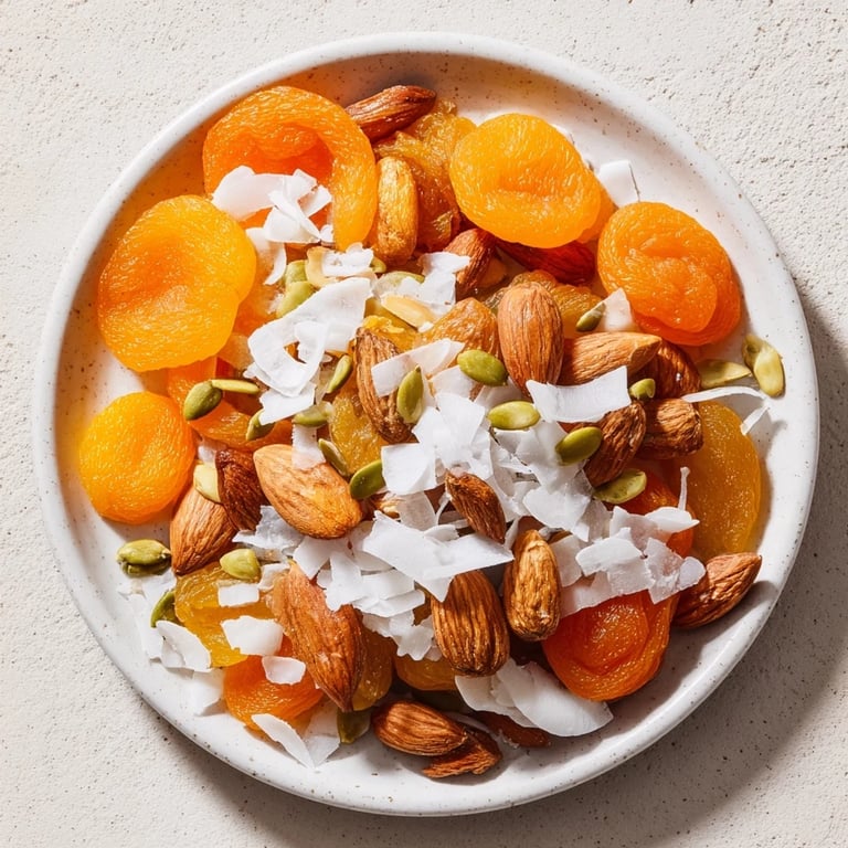 - Arrange the dried apricots and almonds in a small serving bowl or on a plate, mixing gently for even distribution.