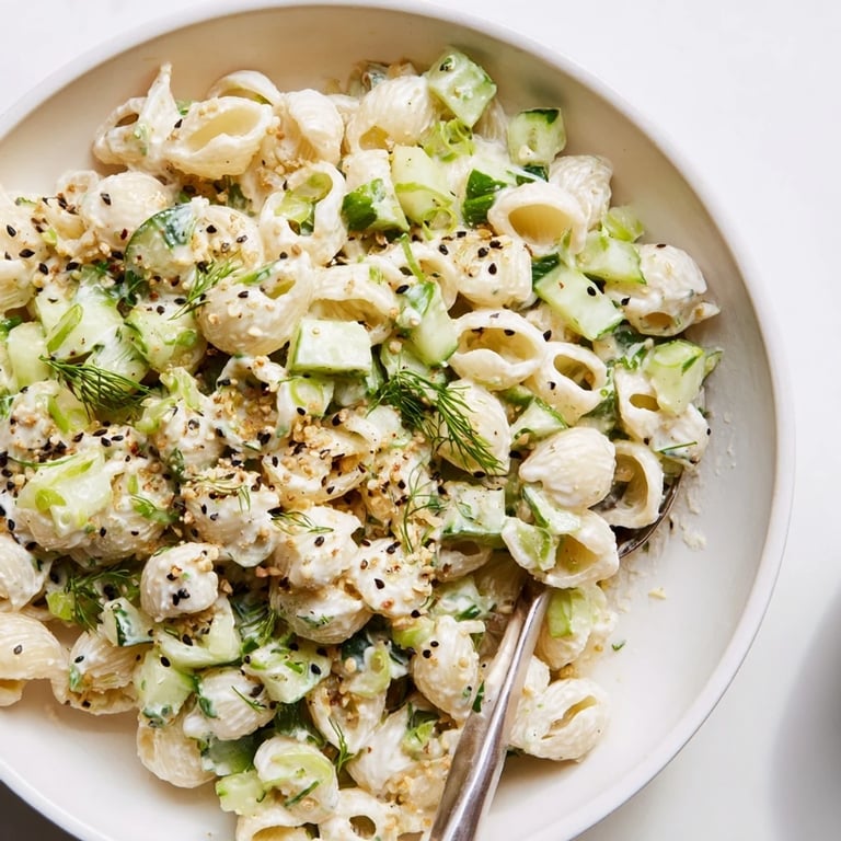 Save My neighbor showed up one Saturday morning with a cooler full of cucumbers from her garden, and I panicked because I already had three sitting on my counter. That's when this pasta salad happened. I boiled a box of tiny shells, chopped everything in sight, and dumped in the last of my everything bagel seasoning without thinking twice. An hour later, we were sitting on the porch with forks in hand, and she asked for the recipe before her bowl was even empty.
