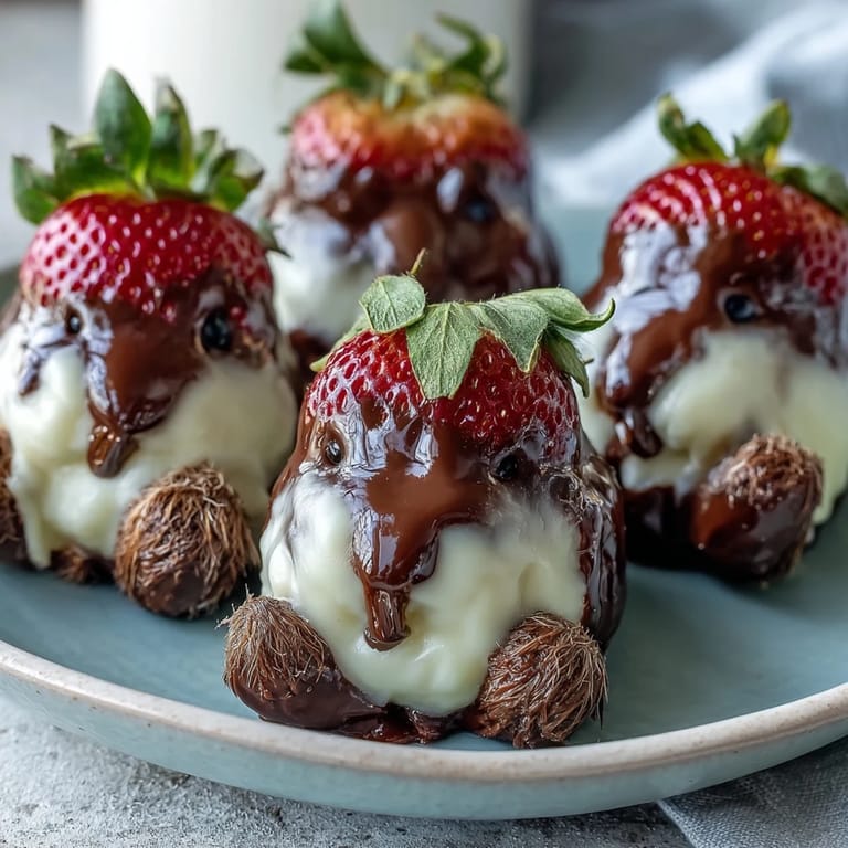 Save My daughter came home from school with bunny-shaped paper cutouts and big Easter plans, so I raided the kitchen for something that would make her eyes light up. Strawberries dipped in white chocolate felt like pure magic, the kind of simple idea that transforms ordinary fruit into something worthy of celebration. When I added marshmallow ears and tiny candy eyes, she gasped before I'd even finished the first one. These little chocolate-drizzled bunnies became the star of our Easter table, and honestly, they taste as delightful as they look.