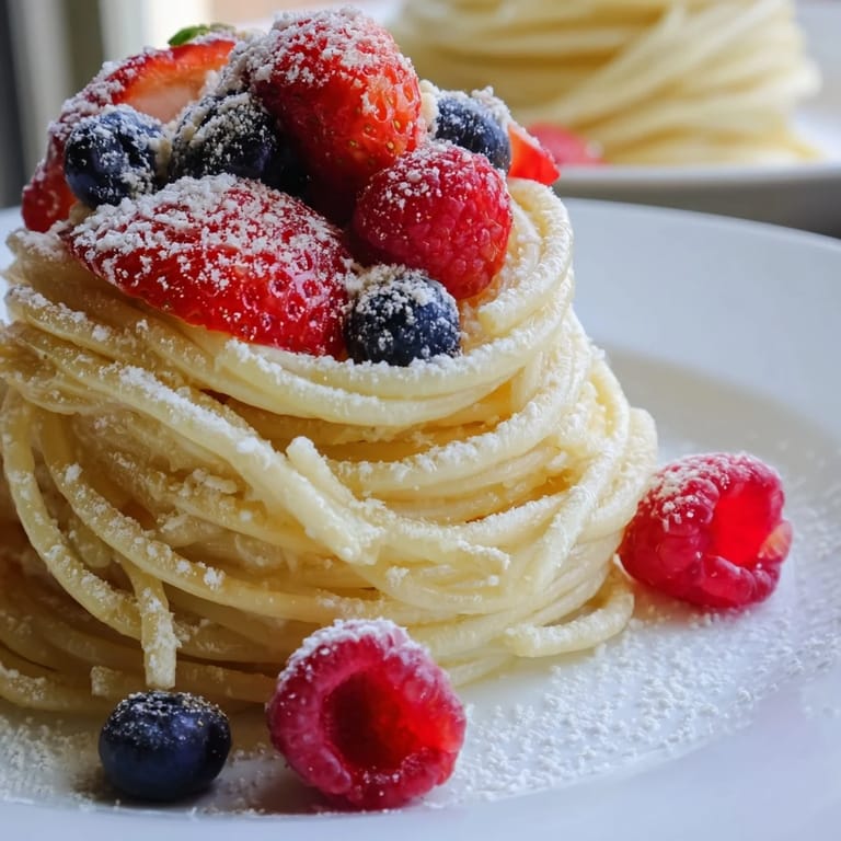 Save Quick Festive Pancake Spaghetti offers a delightful twist on the classic pancake breakfast. Instead of the usual rounds, light and fluffy batter is cleverly piped into charming spaghetti-like strands, creating a playful texture and appearance that’s perfect for a festive brunch or holiday morning. Topped with a vibrant mix of fresh berries and a delicate dusting of powdered sugar, this dish brings cheer and flavor to the table in just 20 minutes.