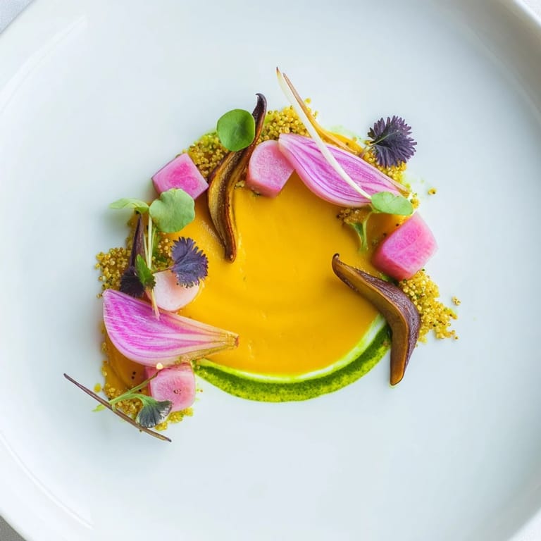 I'll never forget plating this for my partner's birthday dinner—the way their eyes lit up when they saw the figure-eight of carrot purée flowing across the plate, punctuated by jewel-toned beets and the delicate pink of pickled shallots. That moment when presentation becomes memory is exactly why this recipe matters to me.