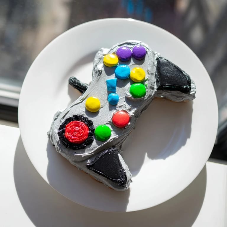 Save A playful, colorful cake designed to look like a classic video game controller, perfect for parties and gaming fans.