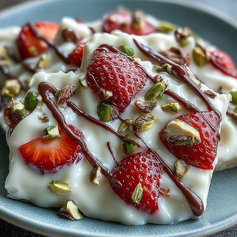 Save My friend texted me a photo of her kitchen at midnight on February 13th—strawberries everywhere, yogurt dripping off a spoon, pure chaos with the best intentions. She was desperately trying to make something special for her partner's breakfast before work, something that felt fancy but didn't require actual baking skills. That's when she discovered this bark, and honestly, it became her secret weapon for last-minute romance. Now whenever February rolls around, I find myself spreading yogurt on parchment paper at odd hours, remembering her laugh about nearly dropping the chocolate drizzle.