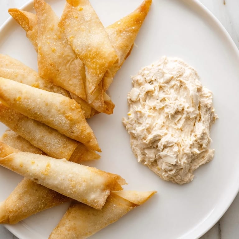 Save My neighbor dropped off a batch of lumpia wrappers one afternoon, and I had half a dozen on my counter with no clear plan. That's when I remembered the satisfying crunch of fried lumpia from Filipino gatherings, and an idea struck: what if I turned the wrappers themselves into chips? Twenty minutes later, my air fryer was doing the work, and the smell filling my kitchen reminded me why I love shortcuts that don't feel like cheating. The creamy dip came together while the chips cooled, and suddenly I had an appetizer that tasted like someone spent hours on it.