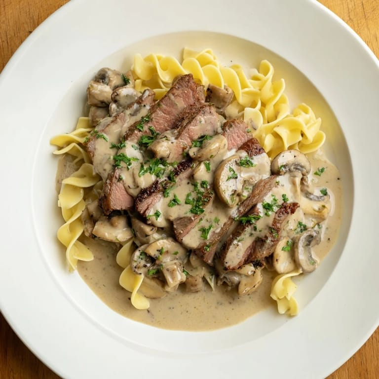 For a different twist, try serving the stroganoff over buttered rice or creamy mashed potatoes instead of egg noodles for a hearty variation.