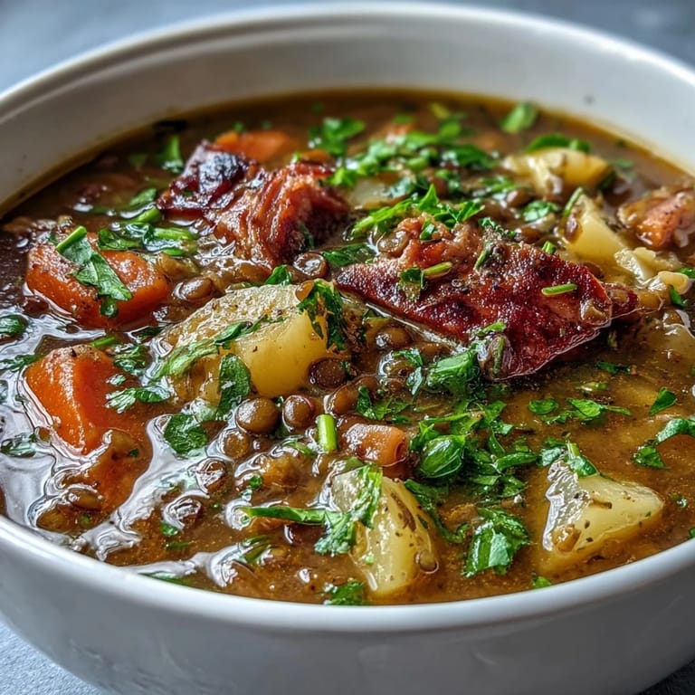 This soup is one of those rare dishes that actually improves after a day in the refrigerator—the flavors settle and deepen, and the lentils absorb even more of that rich, meaty broth. Make it on a Sunday and you have lunch waiting for the busy days ahead, or freeze it in portions for those moments when you need something warm and nourishing without cooking.
