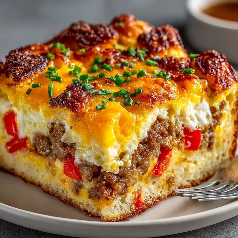 Save This hearty breakfast casserole layers savory sausage, golden bread, fluffy eggs, and tangy cheddar into one irresistible bake. It is a lifesaver for busy mornings when you need to feed a crowd or set up easy leftovers for grab-and-go breakfasts.