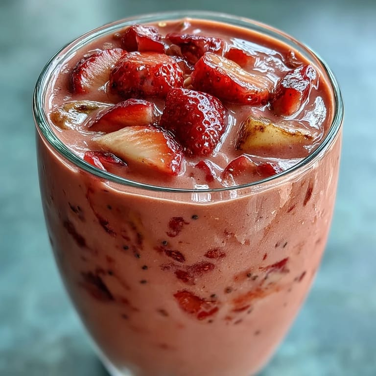 Save Some mornings call for something that does it all — nourishes, energizes, and tastes like a treat. This Strawberry Banana Protein Smoothie with Chia is exactly that. In just five minutes, you can blend together fresh or frozen strawberries, a ripe banana, creamy Greek yogurt, vanilla protein powder, and chia seeds into a silky, vibrant drink that powers you through your morning or refuels you after a workout. It's bright, fruity, satisfying, and endlessly adaptable — the kind of recipe you'll come back to again and again.